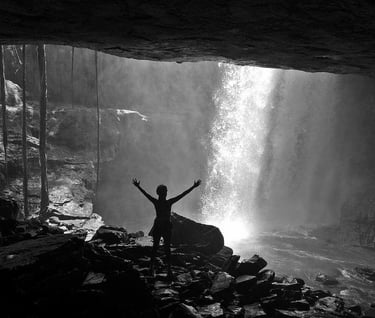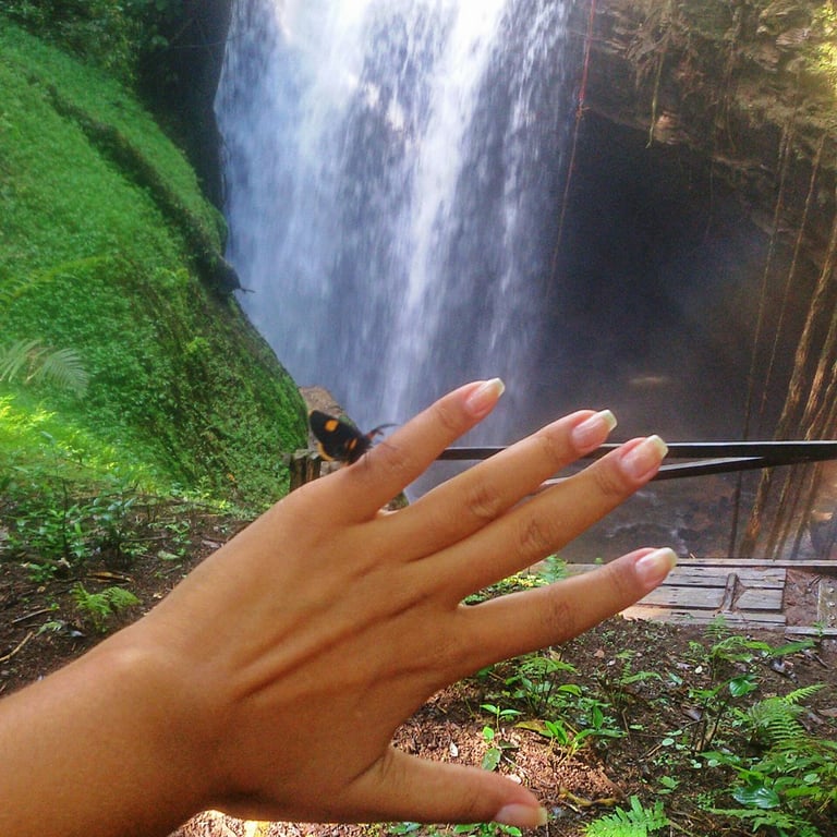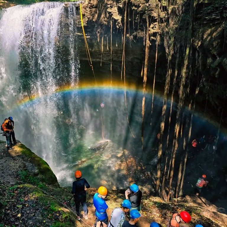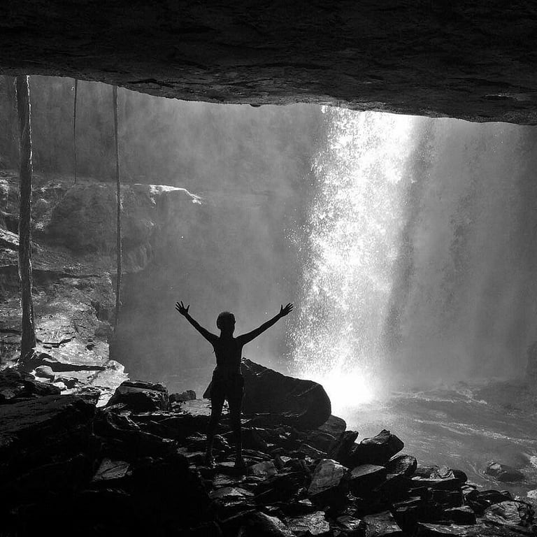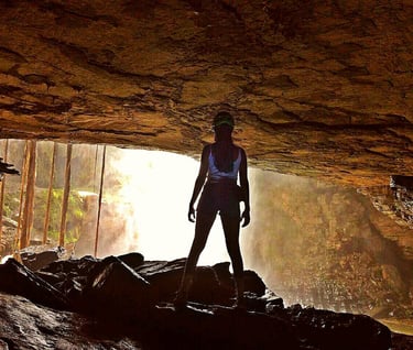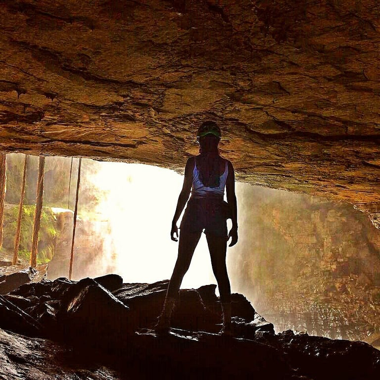 Para chegar à cachoeira, o visitante tem a opção de passar por fora ou por dentro da caverna, e desfrutar da emoção de observar a cachoeira de dentro para fora, um espetáculo, com 20 metros de altura. A aventura dentro da caverna dura cerca de 10 minutos. A experiência envolve caminhada, passando por pedras, rio, com água até à cintura e o breu completo, quando as lanternas são apagadas. Por fora da caverna, além da observação de árvores e pássaros, há a vista da cachoeira.